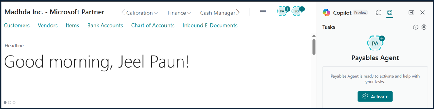 Activation of Dynamics 365 Business Central Payables Agent