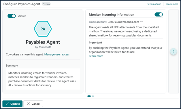 The Payables Agent is an AI-powered functionality integrated within Business Central designed to: