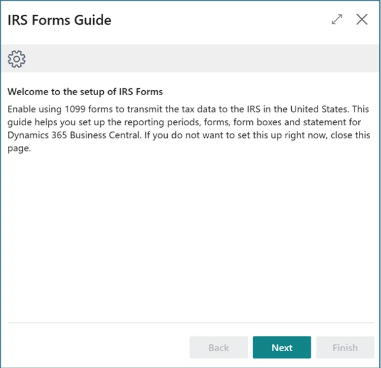 Note: If we’ve never used 1099s in Business Central, choose Create New Setup otherwise choose Transfer Existing Data.