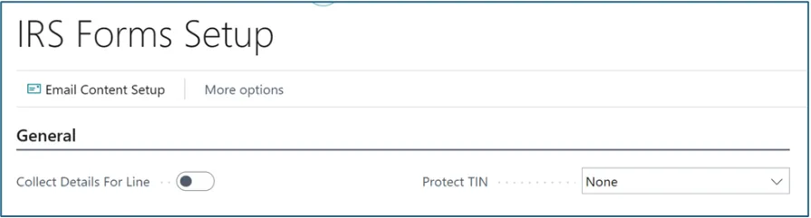 We can change the Collect Details for Line and Protect TIN on the IRS Forms Setup page. Additionally, you can view and/or modify the Email Subject and Email Body that will be generated when sending 1099s from the IRS Forms Setup.