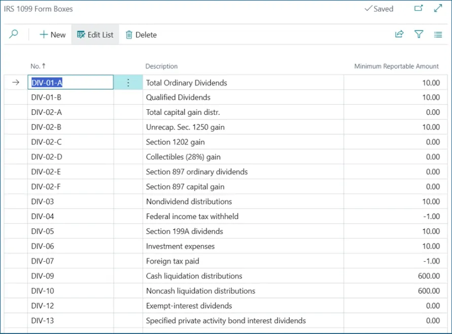Attached to each type of 1099 are the specific 1099 Forms. They are called Form Boxes but are not really the ‘boxes’ on the form. This is where the minimum reportable amounts are defined.