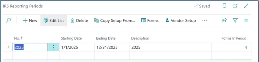 4. Create IRS Reporting Periods