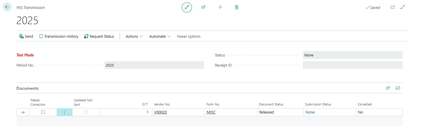 1. On the IRIS Transmissions page, choose the value in the Period No. field to open the IRIS Transmission page, where we can review the information before we submit it.